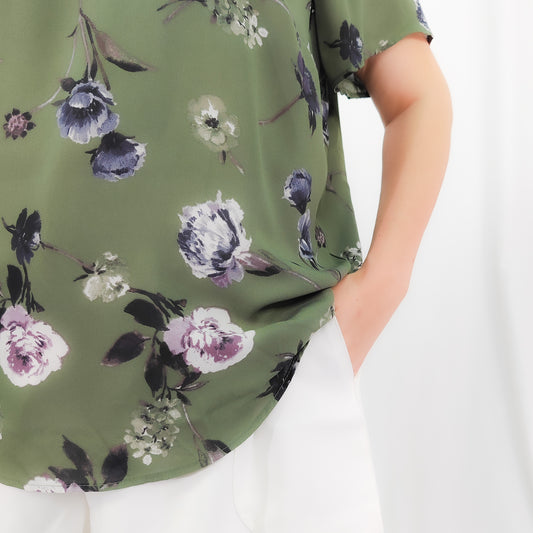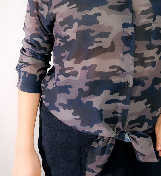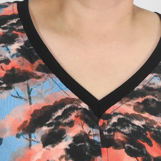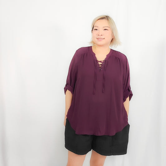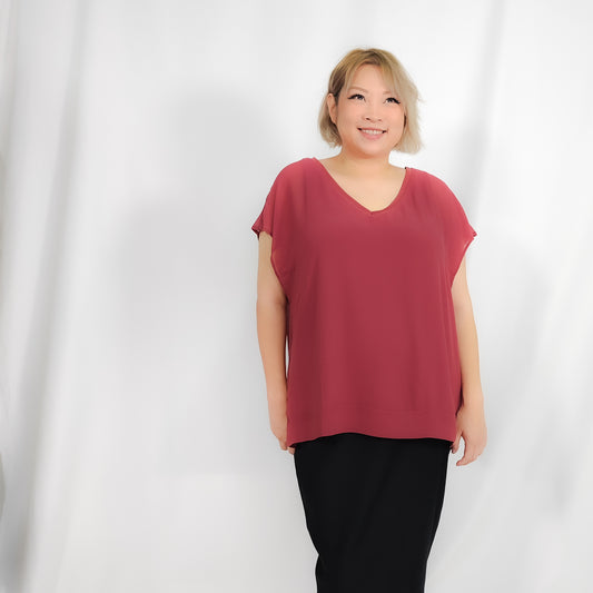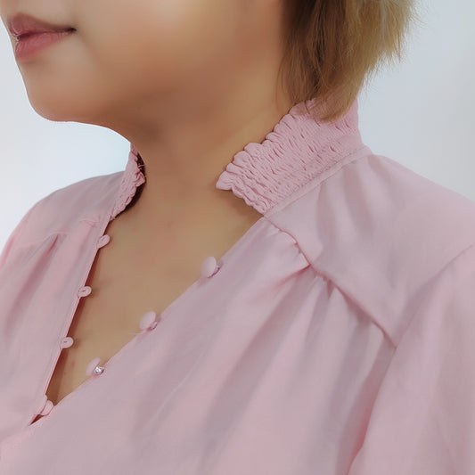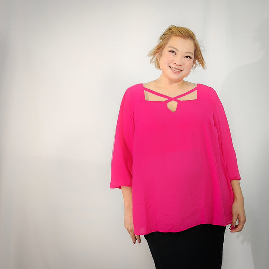 Fuchsia Pink Chiffon Cross Collar Blouse