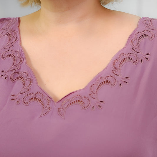 Rose Taupe Georgette Lace yoke Sleeves Blouse
